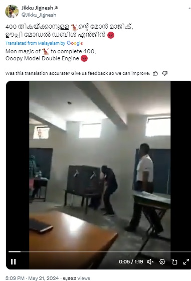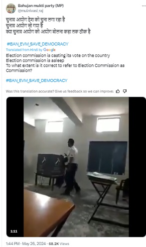 “A polling agent was arrested for influencing voters inside a polling booth in Faridabad. A video was shared on Twitter where the man can be seen walking up to the polling booth as a woman prepares to cast her vote. He appears to press a button on the EVM machine or pointing to a party symbol and then promptly returns to his seat. District Election Office Faridabad lodged an FIR and arrested the man. The incident was reported from Asawati in Prithla constituency in Faridabad,” read the description.
