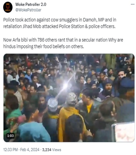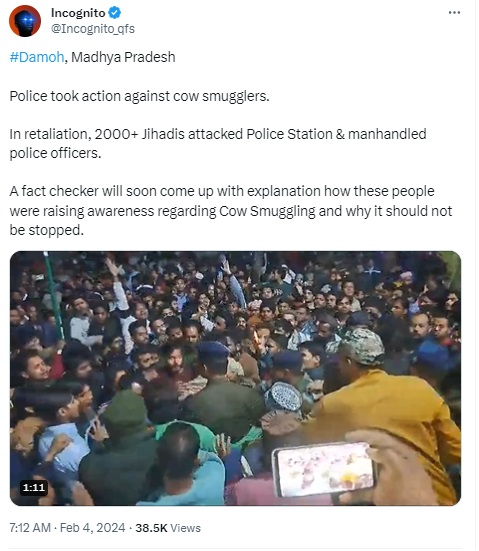 “Police took action against cow smugglers in Damoh, MP, and in retaliation a 2000+ Jihadi Mob attacked Police Station & police officers…,” read one such claim.