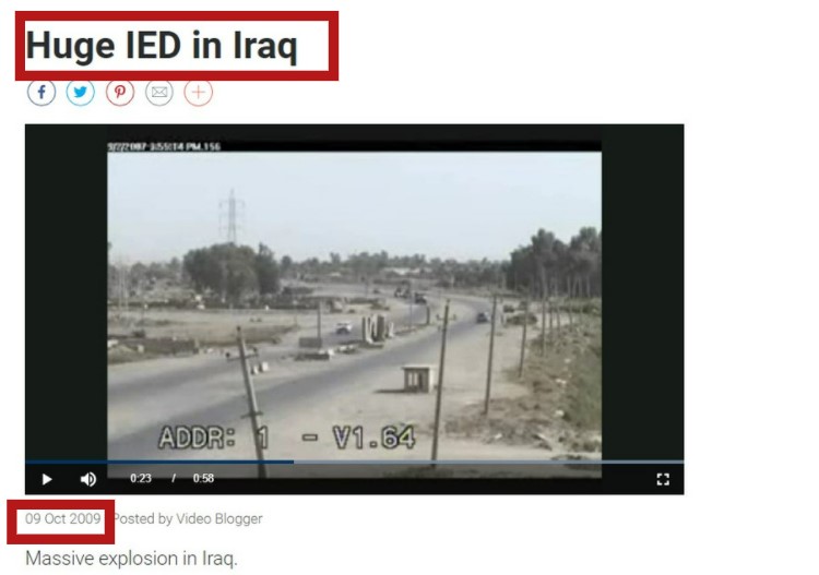 Taking a cue from here we searched for keywords ‘VBIEDs blast’ on Google and came across the longer version of the video was posted on a website called ‘Miliatry.com’, dated October 9, 2009, with the title ‘Huge IED in Iraq’.