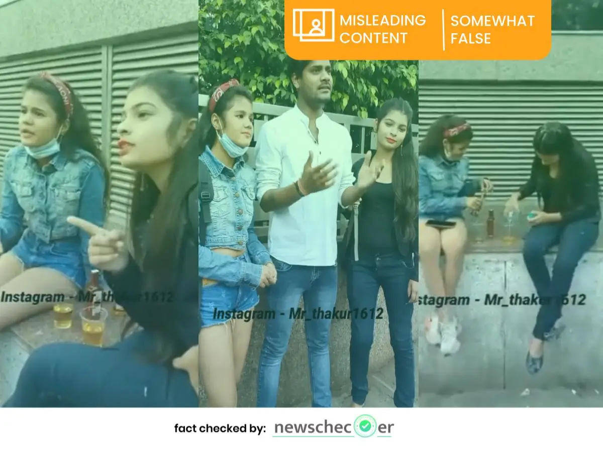 Video showing girls drinking in public is scripted and the people seen in the video are actors. It has been falsely shared as a real incident and it is misleading to link it to Delhi’s new liquor policy.