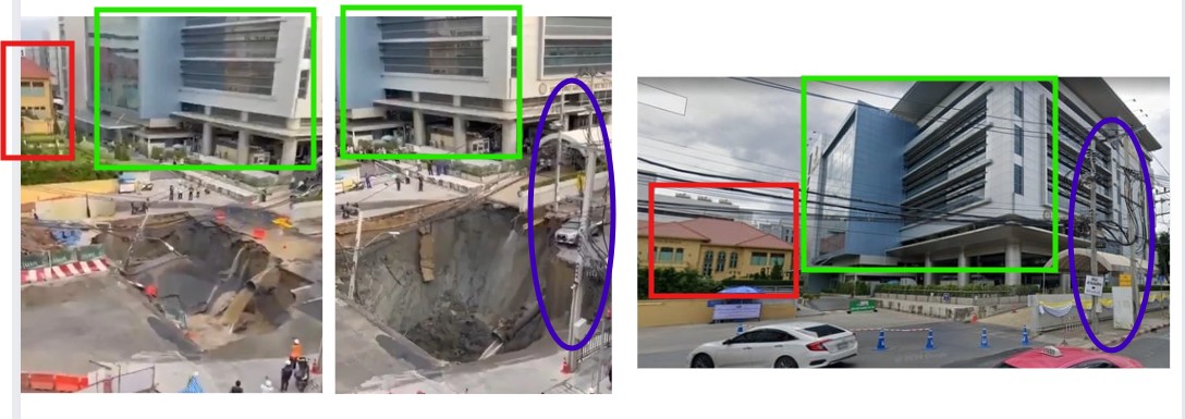 “A 50 metre-deep sinkhole opened in front of a Bangkok hospital early on Wednesday, sucking in cars and electricity poles… linked to construction of a nearby underground railway station.” It added that the local Thai authorities had closed roads around Vajira Hospital on Samsen Road, evacuating nearby residents as the crater expanded to about 30×30 metres wide and 50 metres deep.