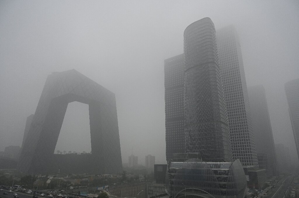 A reverse image search of the first photo led to a Guardian report (September 15, 2015) showing the same image, described as Beijing buildings blanketed in heavy smog in January 2014. A National Geographic article (January 14, 2014) also featured the image, credited to Xinhua Press, confirming it was taken in China.