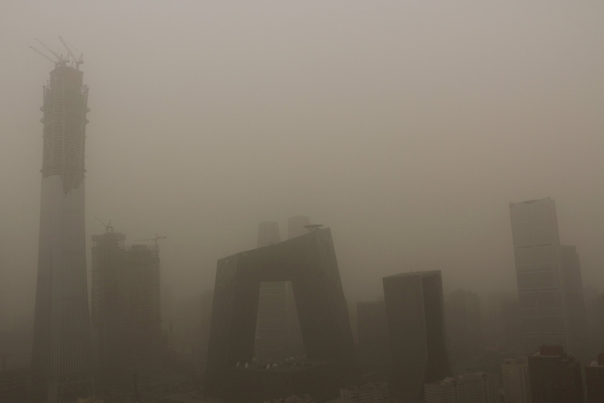 A reverse image search of the third photo led to a BBC report (May 4, 2017) about a dust storm that choked northern China, featuring the same skyline image from Beijing. The photo was also used by Caixin Global (May 4, 2017), attributed to Visual China, describing the China Central Television building in Beijing obscured by dust.
