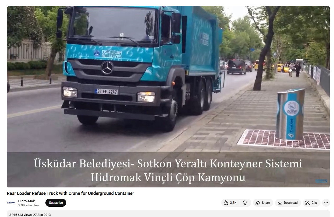 A reverse image search on the keyframes of the viral clip led us to a YouTube video uploaded on August 27, 2013, by a Turkish channel named Hidro-Mak. In that video, identical scenes of garbage being lifted from an underground bin into a truck can be seen.