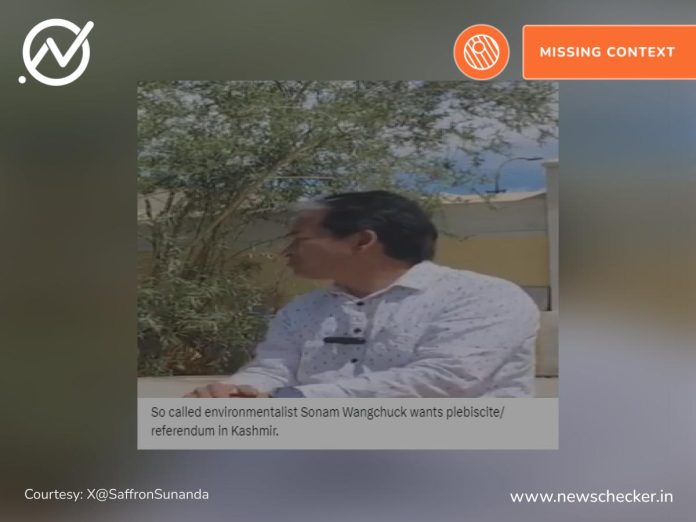 Several social media users, including verified handles, shared a video of activist Sonam Wangchuk claiming that he demanded a referendum in Kashmir. In the video, Wangchuk is heard saying, “Any place should be happy. They should go whenever they want to go…You must have heard of referendums, plebiscites…So if everyone thinks like this..then why not in Kashmir?” Newschecker found that the video has been shared out of context. Read more here.