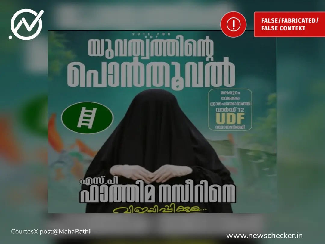 Ahead of the elections to the local bodies in Kerala on December 9 and December 11, a photo of a woman in a burqa went viral, claiming to be a campaign poster for a UDF candidate. Newschecker found the claim to be false.