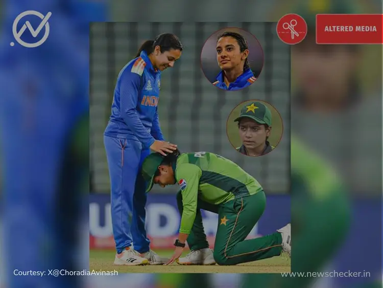 A viral image claiming to show Pakistan women’s national cricket team captain Fatima Sana touching star Indian batter Smriti Mandhana’s feet after the former lost by 88 runs in the World Cup match in Colombo on October 5, 2025. Newschecker’s investigation, however, revealed that the image was generated using AI. Read more here.