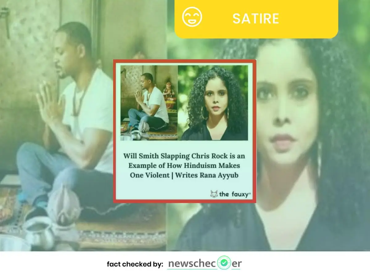 Rana Ayyub didn’t say, ‘Will Smith Slapping Chris Rock is an Example of How Hinduism Makes One Violent.’ Viral article is a satire.