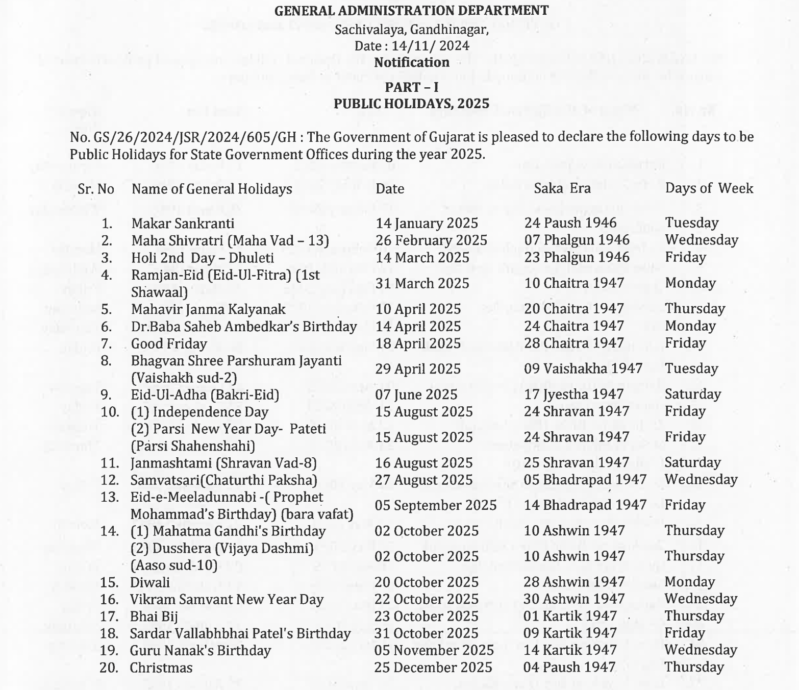 વળી, અમે ગુજરાત સરકારની જાહેર રજાઓની યાદી પણ તપાસી. તેમાં પણ સાતમી જુલાઈનો જાહેર રજા દિવસ તરીકે ઉલ્લેખ નથી.