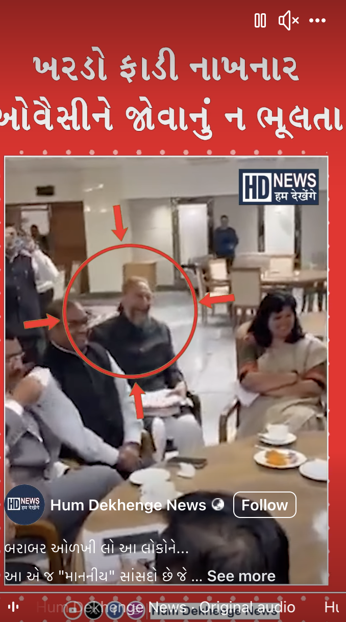 પોસ્ટના કૅપ્શનમાં લખ્યું છે, ” બરાબર ઓળખી લો આ લોકોને. આ એ જ “માનનીય” સાંસદો છે જે વકફ સુધારા ખરડા ઉપર એક-બીજા ઉપર આકરા પ્રહારો કરતા હતા, અને પછી કેન્ટીનમાં કેટલા ખુશખુશાલ છે! સંસદમાં ખરડો ફાડી નાખનાર ઓવૈસીને જોવાનું ન ભૂલતા!”