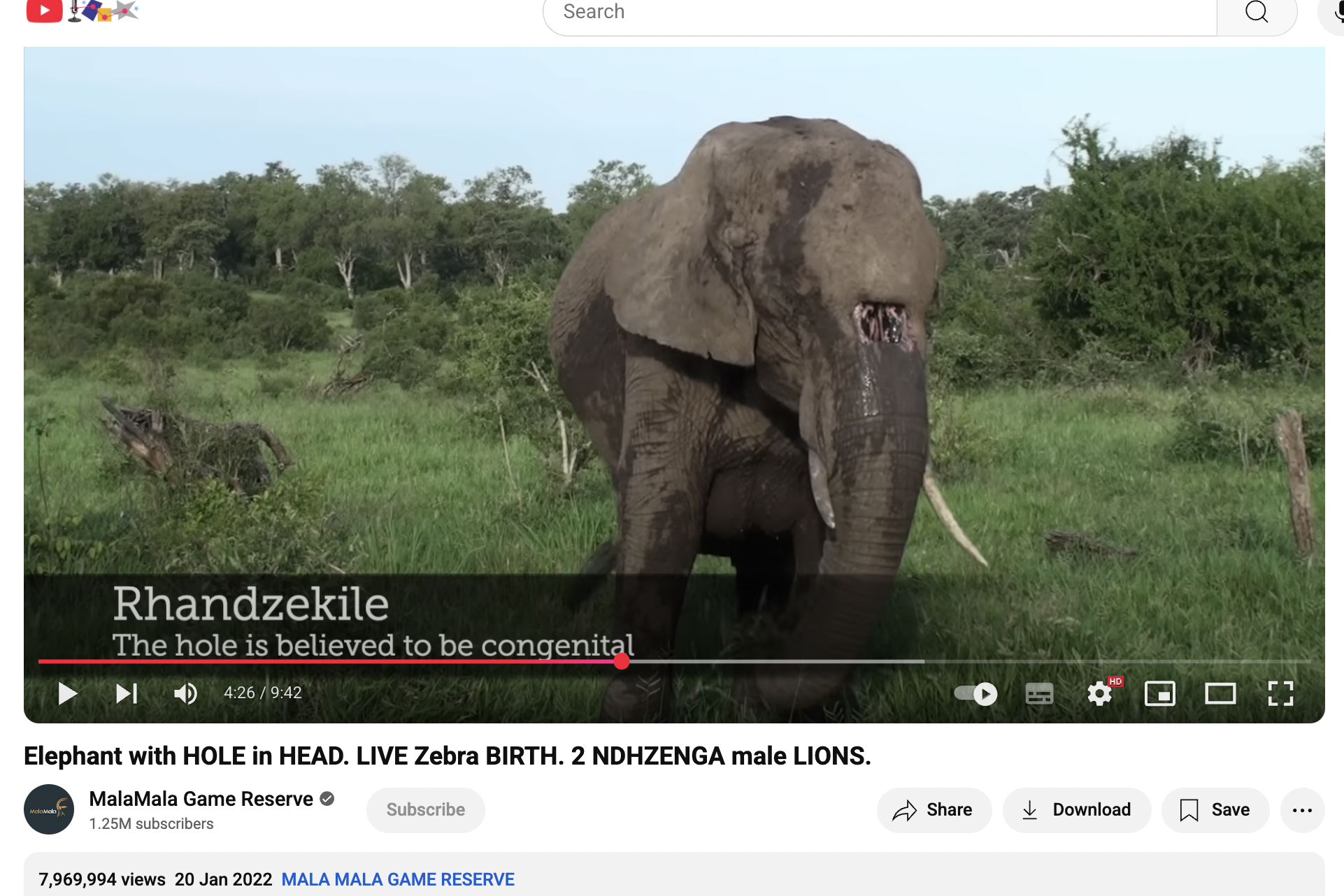 You Tube Video by Mala Mala Game Reserve, 20th Jan, 2022