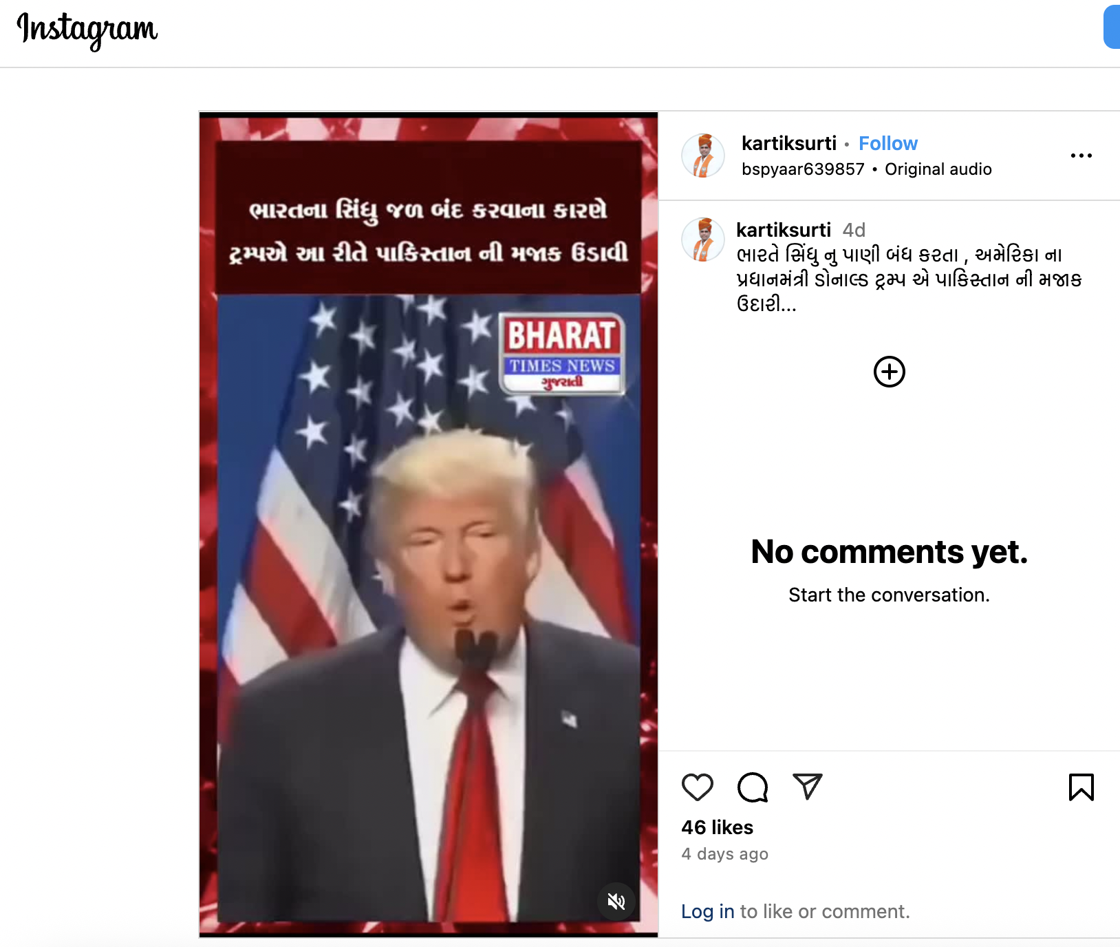 અમારી તપાસમાં મળેલા પુરાવાઓ સ્પષ્ટ કરે છે કે સિંધુ જળ સંધિ સ્થગિત થયા પછી રાષ્ટ્રપતિ ટ્રમ્પ પાકિસ્તાનની મજાક ઉડાવી રહ્યા છે તેવા દાવા સાથે વાયરલ થયેલો વીડિયો ખરેખર વર્ષ 2016નો છે. ટ્રમ્પે તેમના હરીફ માર્કો રુબિયોની મજાક ઉડાવી હતી તે સમયનો એ વીડિયો છે.