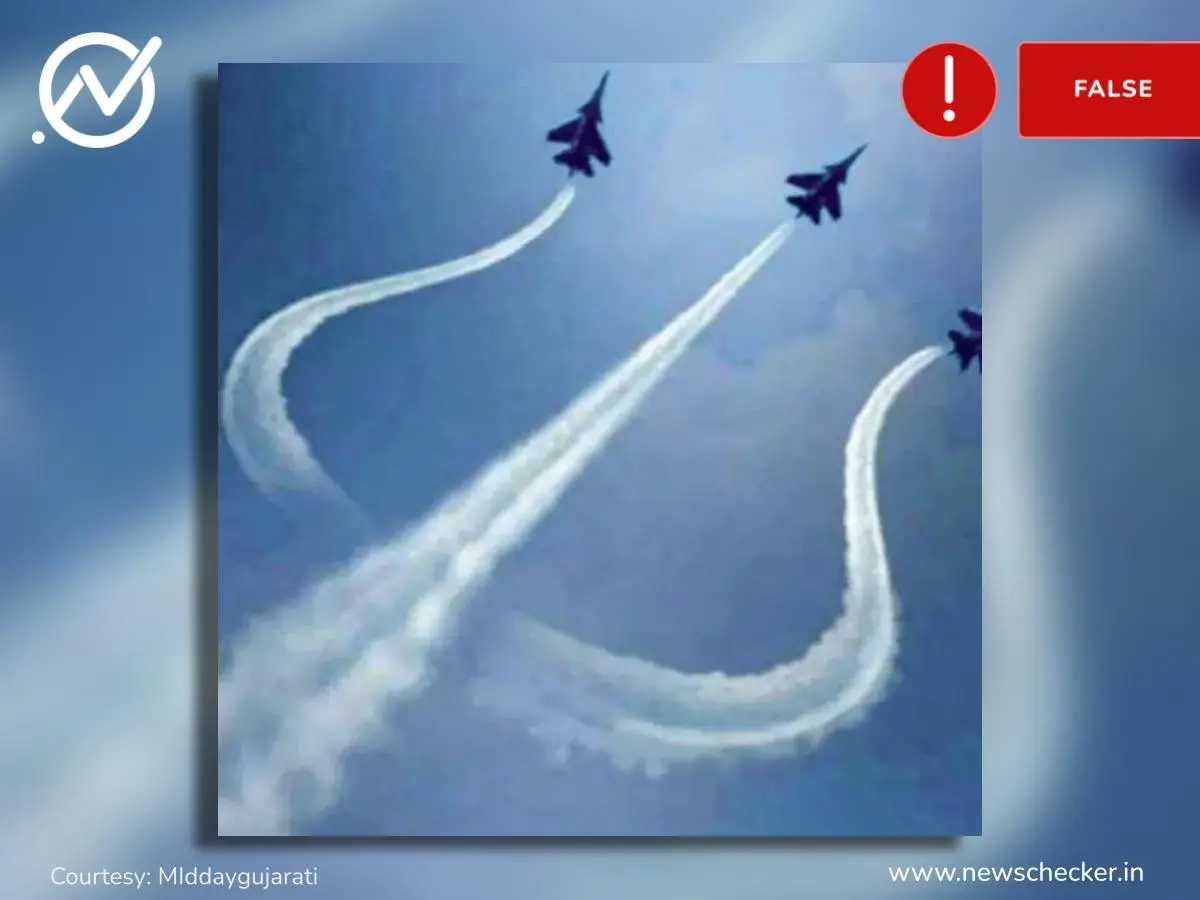 સોશિયલ મીડિયામાં તસવીર વાઇરલ થઈ જેમાં દાવો કરાયો કે, મહાકુંભ મેળામાં ભારતીય વાયુસેના દ્વારા અદભૂત પ્રદર્શનના નજારો જેમાં ફાઇટર જેટ દ્વારા ત્રિશૂળની આકૃતિ બનાવાઈ. પરંતુ દાવો ખોટો છે. વર્ષ 2019માં યોજાયેલ ઍર શૉની તસવીર છે. તે મહાકુંભમાં IAFના ઍર શૉની તસવીર નથી. અહેવાલ વાંચવા અહીં ક્લિક કરો.