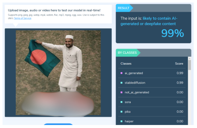 अब हमने इस तस्वीर को AI डिटेक्टिंग टूल्स की मदद से जांचा। Hive Moderation पर वायरल तस्वीर को चेक करने पर पाया गया कि यह तस्वीर 99% AI जनरेटेड है।