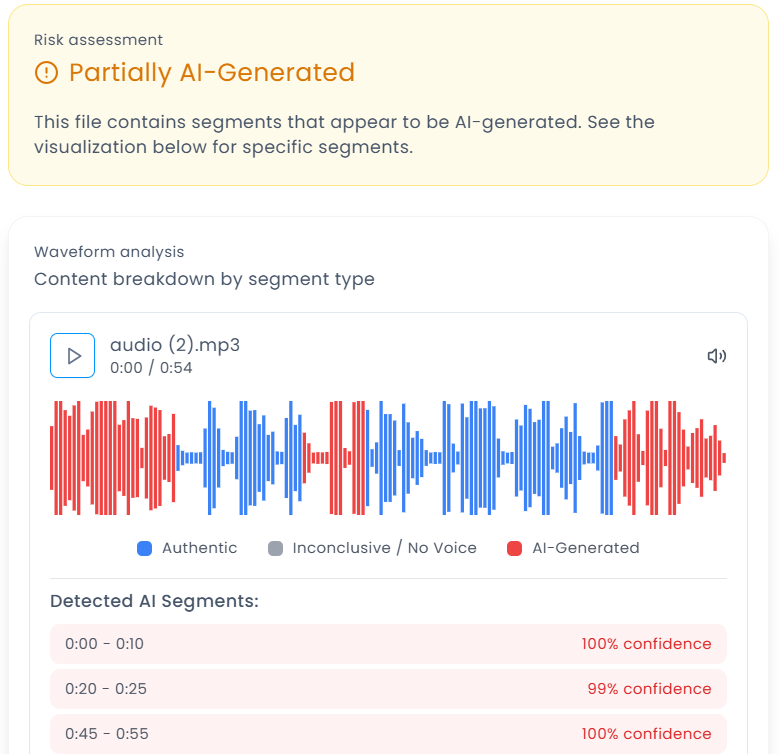 वायरल वीडियो को ध्यान से देखने और सुनने पर हमें इसमें कुछ विसंगतियां नजर आईं. इस वीडियो में सुनाई दे रही आवाज़ में भी एक बनावटीपन है. इसके अलावा, किसी भी विश्वसनीय मीडिया रिपोर्ट में वायरल वीडियो का अंश नहीं मिलने पर हमें ये शक हुआ कि ये वीडियो एडिटेड या AI जेनरेटेड हो सकता है. इसलिए हमने वायरल वीडियो में मौजूद ऑडियो की ओपन AI टूल Aurigin.ai और DeepFake-O-Meter से जांच की. इन दोनों टूल्स की जांच पता चला कि वीडियो में मौजूद ऑडियो काफी हद तक AI जेनरेटेड है.