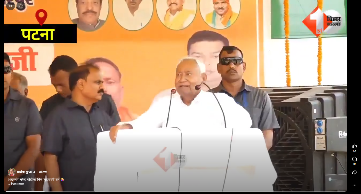 हमारी जांच में मिले साक्ष्यों से यह स्पष्ट है कि हालिया चुनावी सभा में नीतीश कुमार द्वारा ‘नरेंद्र मोदी फिर से मुख्यमंत्री बनें’ कहे जाने के दावे से वायरल यह वीडियो पुराना है और पिछले लोकसभा चुनाव के दौरान का है.