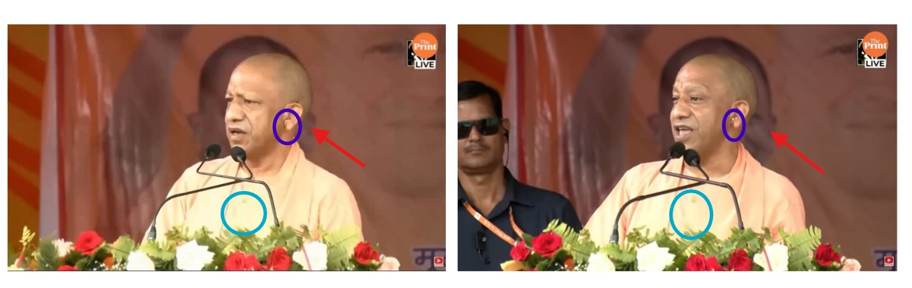 वायरल वीडियो को ध्यान से देखने पर हमें इसमें कई विसंगतियां नजर आती हैं. मुख्यमंत्री का निचला जबड़ा थोड़ा धुंधला दिख रहा था, और उनकी कान की बाली, जो असली वीडियो में साफ़ दिख रही थी, वायरल वीडियो में त्वचा के साथ मिल गई थी. उनके कुर्ते के बटन भी अजीब दिख रहे थे, और बैकग्राउंड में लगे पोस्टर की तस्वीर भी टेढ़ी-मेढ़ी लग रही थी, जो डिजिटल छेड़छाड़ का संकेत देती है.