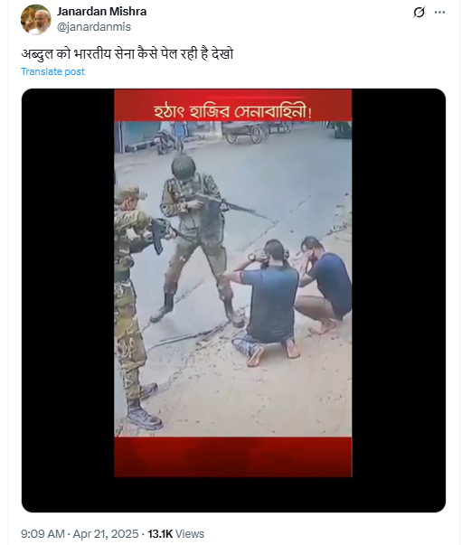 हालांकि, हमने अपनी जांच में पाया कि वायरल दावा फर्जी है और यह वीडियो बांग्लादेश के फरीदपुर में एक व्यवसायिक प्रतिष्ठान पर हमला कर रहे दो लोगों को बांग्लादेश की सेना द्वारा गिरफ्तार किए जाने का है.