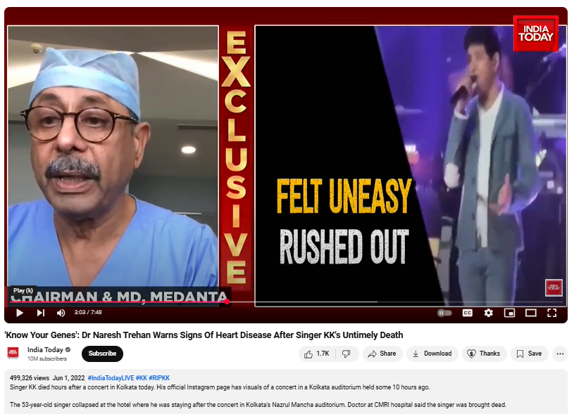 हालांकि, इस वीडियो में मेदांता हॉस्पिटल के एमडी डॉ नरेश त्रेहन, गायक केके की मौत के बाद हृदय रोग से लोगों को बचने की सलाह दे रहे थे. इस वीडियो में उन्होंने कहीं भी वायरल क्लिप में मौजूद बातों को नहीं कहा है.