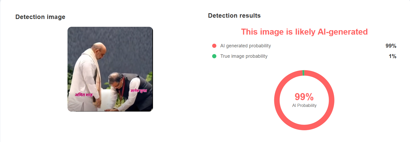 Wasitai ने भी अमित शाह के पैरों में झुकते ज्ञानेश कुमार के वायरल वीडियो में मौजूद दृश्य के AI से बने होने की संभावना जताई है।