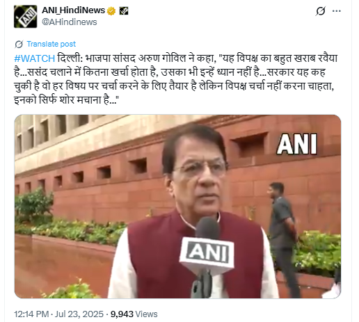 Video Shared by ANI Hindi X account on 23rd July 2025