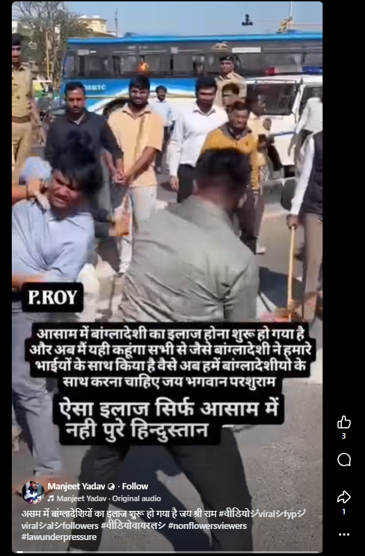 इस वीडियो को X पर असम में बांग्लादेशी लोगों की पिटाई के दावे वाले कैप्शन के साथ शेयर किया गया है.