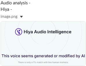 पड़ताल के दौरान हमने यह भी पता करने की कोशिश की कि क्या वायरल वीडियो में मौजूद ऑडियो एआई जेनरेटेड है? इसके लिए हमने ट्रस्टेड इनफार्मेशन एलायंस की डीपफेक एनालिसिस यूनिट (DAU), जिसका न्यूजचेकर भी हिस्सा है, से संपर्क किया. उन्होंने क्लिप में मौजूद ऑडियो को हिया और ऑरिगिन (Aurigin AI) एआई डिटेक्शन टूल्स की मदद से जांचा, तो दोनों टूल्स ने इसके काफ़ी हद तक एआई जेनरेटेड होने की संभावना जताई.