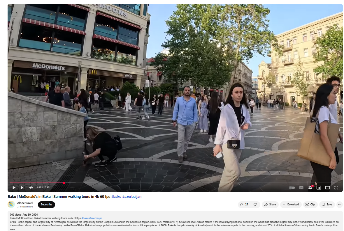 सीजफायर के बाद अजरबैजान में पाकिस्तान के पक्ष में जश्न मनाए जाने के दावे से शेयर हो रहे इस वीडियो की जांच में हमने सबसे पहले वीडियो के लोकेशन की पड़ताल की. हमने एक यूट्यूब वीडियो की मदद से यह पाया कि वायरल वीडियो में दिख रहा स्थान अजरबैजान की राजधानी बाकू का निजामी स्ट्रीट है.