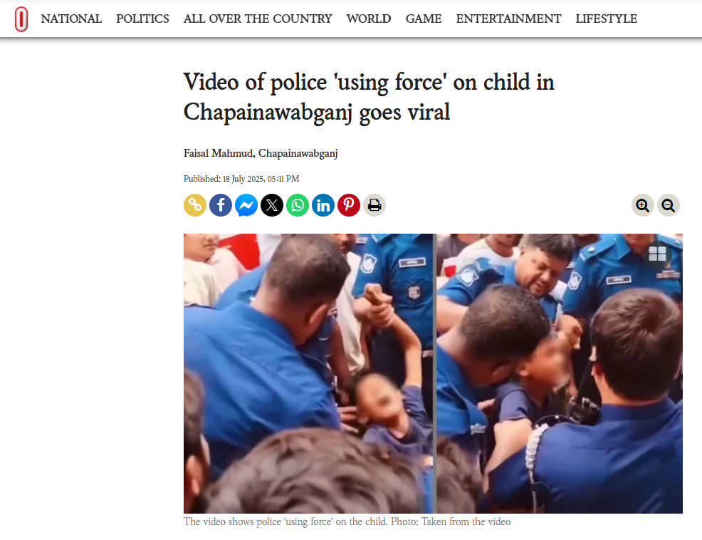 रिपोर्ट में बताया गया था कि बीते दिनों एक वीडियो वायरल हुआ था, जिसमें चपाईनवाबगंज सदर पुलिस स्टेशन के ओसी मतीउर रहमान एक बच्चे का हाथ पकड़े नजर आ रहे थे. इसके अलावा अन्य अधिकारी बच्चे के बाल खींचते नजर आ रहे थे. वीडियो वायरल होने के बाद सदर पुलिस स्टेशन के ओसी मतीउर रहमान ने घटना की जानकारी देते हुए बताया था कि यह घटना 6 जुलाई 2025 को नेशनल सिटिजन पार्टी (एनसीपी) की पदयात्रा के दौरान हुई थी और इस दौरान बच्चे को नशीली दवा रखने हुए पकड़ा गया था. वह एनसीपी नेताओं के पास जाने की कोशिश कर रहा था, इसलिए उन्होंने बच्चे को हटा दिया था.