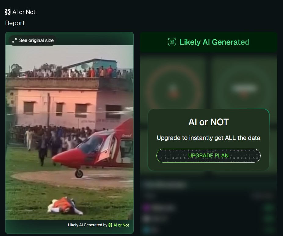 वायरल वीडियो में मौजूद दृश्यों को AI or Not एवं Was it AI जैसे टूल्स से जांचा तो दोनों ने ही इसके एआई से एडिटेड होने की संभावना जताई.