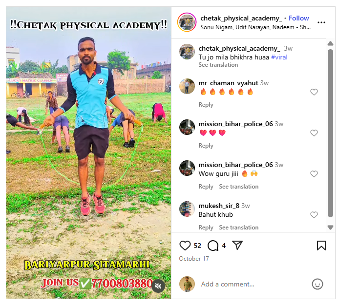 हालांकि, दोनों ही वीडियो के साथ मौजूद कैप्शन में यह नहीं बताया गया था कि यह वीडियो कहां का है, इसलिए हमने वीडियो में दिख रहे दृश्यों की मदद से गूगल सर्च किया. इस दौरान हमें वही बैकग्राउंड वाला वीडियो एक इंस्टाग्राम अकाउंट पर मिला, जिसमें इसे बिहार के सीतामढ़ी के बरियारपुर का बताया गया था.