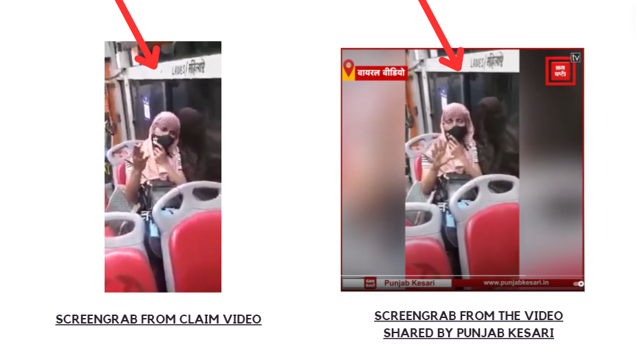 इस दावे की पड़ताल के लिए सबसे पहले हमने वायरल वीडियो के की-फ्रेम्स को रिवर्स इमेज सर्च किया। जिसके परिणाम में हमें 23 मार्च 2022 को पंजाब केसरी के यूट्यूब चैनल पर एक वीडियो रिपोर्ट मिली, जिसमें वायरल वीडियो को देखा जा सकता है। रिपोर्ट में बताया गया है कि कैसे लड़की बनकर यात्रा कर रहे युवक की पोल खुल गई। पंजाब केसरी द्वारा शेयर किए गए वीडियो और सोशल मीडिया पर वायरल हो रहे वीडियो में दिख रहे दृश्यों का मिलान नीचे देखा जा सकता है।