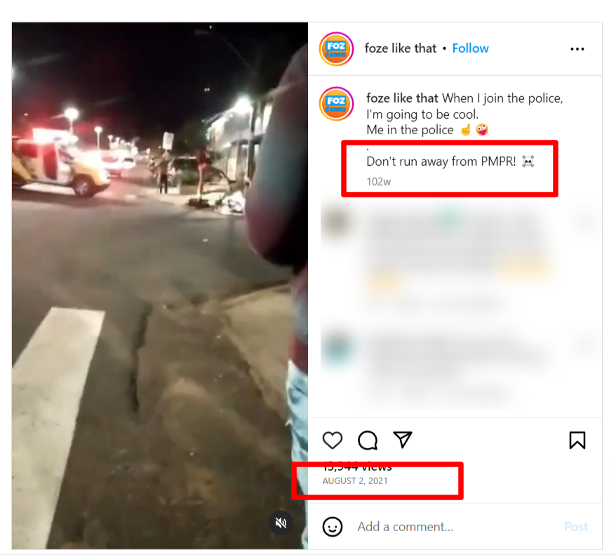 Newschecker ने साल 2023 में भी वायरल वीडियो की पड़ताल की थी. रिवर्स इमेज सर्च के दौरान हमें 2 अगस्त 2021 को किया गया एक इंस्टाग्राम पोस्ट मिला था. पोस्ट में इसे ब्राजील के पराना राज्य के मिलिट्री पुलिस से संबंधित बताया गया था.