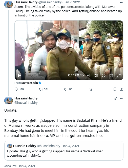 इसके अलावा, हमें जांच में इस संबंध में 2021 में किया गया एक X पोस्ट भी मिला. इस पोस्ट में भी मौजूद वीडियो में दिख रहे शख्स को सदाकत खान और उसे मुनव्वर फारुकी का दोस्त बताया गया था. साथ ही यह भी बताया गया था कि सदाकत एक कंस्ट्रक्शन कंपनी में सुपरवाइजर है और मुनव्वर का दोस्त है.