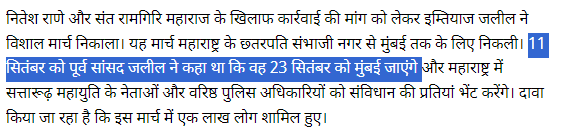 वायरल दावे की जांच के लिए हमने वीडियो के की-फ्रेम्स को गूगल रिवर्स इमेज सर्च किया। इस दौरान हमें यह वीडियो 15 सितंबर को किये गए इंस्टाग्राम पोस्ट में मिला। इस पोस्ट से यह स्पष्ट हो गया कि वीडियो 23 सितंबर 2024 को इम्तियाज़ जलील द्वारा निकाली गई रैली से पहले का है।