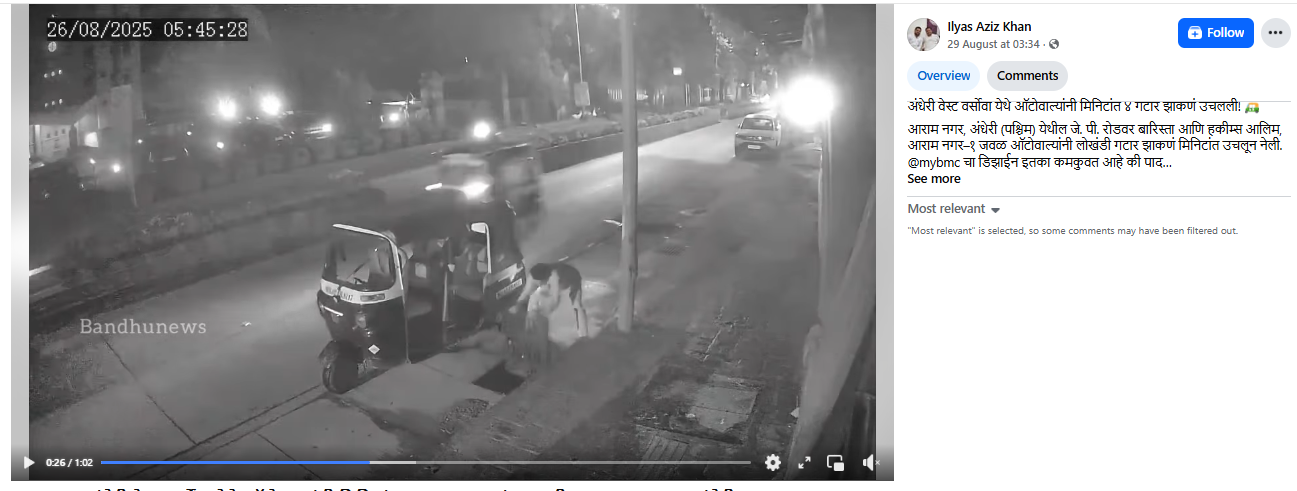 इस दौरान हमें इस संबंध में 28 अगस्त 2025 को दर्ज किया गया FIR भी मुंबई पुलिस की वेबसाइट पर मिला. यह FIR बीएमसी इंजीनियर विक्की श्यामलाल शर्मा ने दर्ज कराई थी. FIR में उन्होंने बताया था कि सड़क कार्यों के निरीक्षण के दौरान उन्हें अंधेरी पश्चिम में बारिस्ता जेपी रोड के पास नगरपालिका के मालिकाना हक़ वाले 5 गटर के ढक्कन गायब मिले थे.