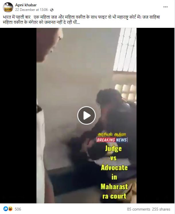 सोशल मीडिया पर एक पोस्ट के जरिए दावा किया गया है कि महाराष्ट्र की एक अदालत में महिला जज और एक महिला वकील में मारपीट हो गई।