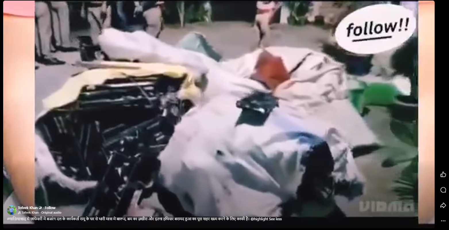 सोशल मीडिया पर एक वीडियो इस दावे से शेयर किया जा रहा है कि गाजियाबाद में बजरंग दल के कार्यकर्ता रामू के घर से पुलिस ने भारी मात्रा में बारूद और बम बरामद किया.