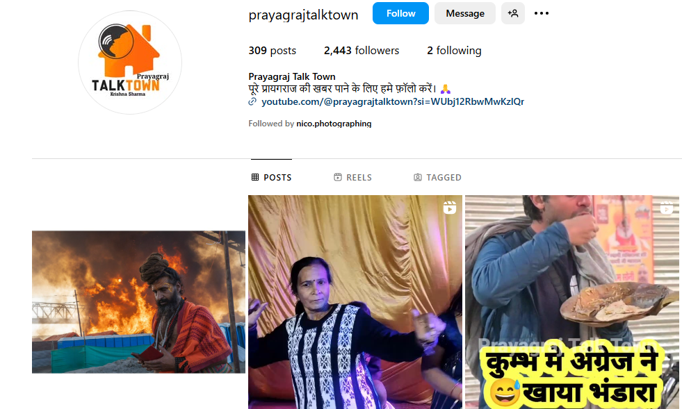 Newschecker ने वायरल दावे की पड़ताल के दौरान वीडियो को ध्यानपूर्वक देखा. इस दौरान हमें माइक पर prayagraj talk town लिखा हुआ दिखाई दिया. जब हमने कीवर्ड सर्च किया तो हमें इस नाम से बना एक इंस्टाग्राम अकाउंट मिला.