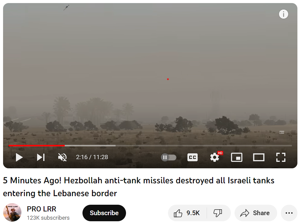 सोशल मीडिया पर इज़राइल-फ़िलिस्तीन विवाद से जोड़कर एक वीडियो वायरल है। करीब 6 मिनट लंबे इस वीडियो में दिखाया गया है कि एक सुनसान रास्ते से गुज़र रहे टैंकर्स पर हमला किया जा रहा है। पोस्ट के जरिये दावा किया गया है कि यह वीडियो गाज़ा में घुसने की कोशिश कर रहे इज़रायली टैंक और बख्तरबंद गाड़ियों का है, जिन्हें हिज्बुल्ला ने एंटी टैंक मिसाइलों से उड़ा दिया।