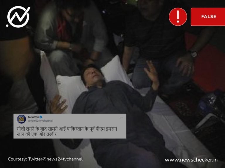 सोशल मीडिया पर पूर्व पाकिस्तानी पीएम इमरान खान की एक तस्वीर शेयर कर दावा किया जाने लगा कि यह उनकी हालिया तस्वीर है। गौरतलब है कि वह बीते 3 नवंबर को एक हमले में घायल हो गए थे। हमारी पड़ताल में पता चला कि उनकी यह तस्वीर काफी पुरानी है। फैक्ट चेक यहां पढ़ा जा सकता है।