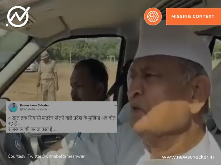 सोशल मीडिया पर राजस्थान के मुख्यमंत्री अशोक गहलोत के एक वीडियो को शेयर कर दावा किया गया कि उन्होंने खुद यह स्वीकार किया है कि कांग्रेस के राज में सूबे की जनता परेशान है। हमारी पड़ताल में यह दावा भ्रामक साबित हुआ। फैक्ट चेक यहां पढ़ा जा सकता है।