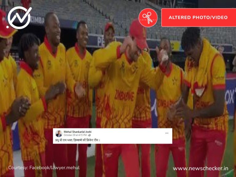 सोशल मीडिया पर जिम्बाब्वे के खिलाड़ियों का एक डांस वीडियो वायरल हो गया। दावा किया जाने लगा कि पाकिस्तान पर मिली जीत के बाद जिम्बाब्वे के खिलाड़ी ‘जय श्रीराम’ गाने की धुन पर डांस करने लगे। हमारी पड़ताल में यह दावा फर्जी साबित हुआ। पूरा फैक्ट चेक यहां पढ़ा जा सकता है।