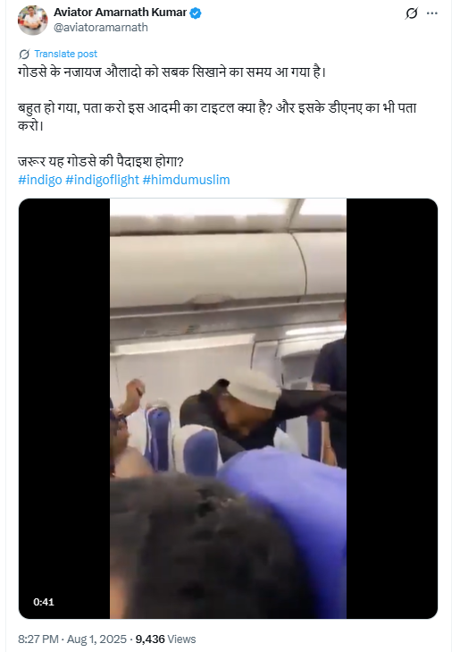 सोशल मीडिया पर इस वीडियो के वायरल होने के बाद कई यूजर्स ने इंडिगो से इस घटना को लेकर स्पष्टीकरण मांगा. कई यूजर्स ने इस घटना का वीडियो शेयर करते हुए यह भी दावा किया कि इंडिगो की इस फ्लाइट में अपने मुस्लिम सहयात्री को थप्पड़ मारने वाला शख्स हिंदू है.