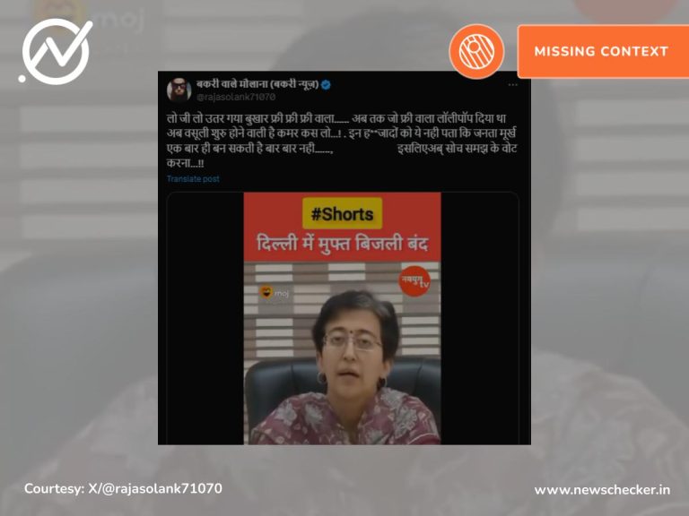 सोशल मीडिया यूजर्स ने आतिशी मार्लेना के एक वीडियो को शेयर कर दावा किया कि दिल्ली सरकार की तरफ से दी जाने वाली बिजली सब्सिडी बंद हो गई है। हमारी जांच में ये दावा फर्जी साबित हुआ। फैक्ट चेक यहां पढ़ें।
