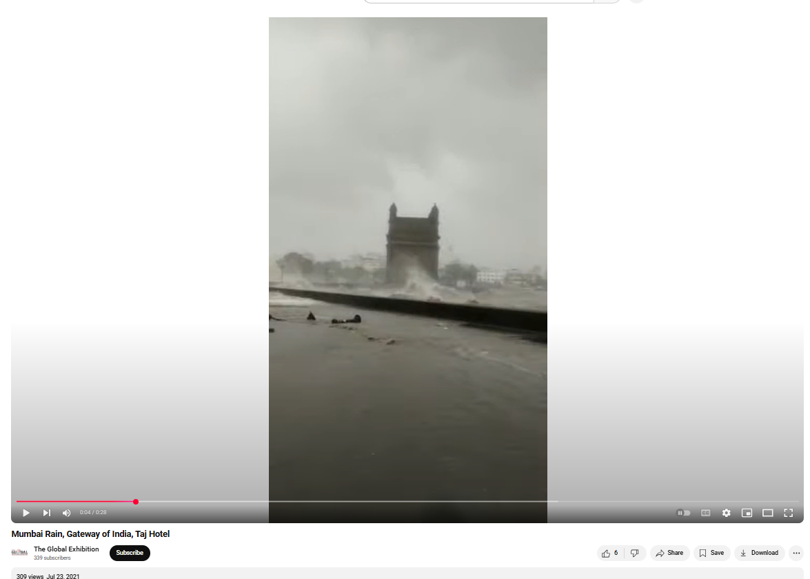 मुंबई के गेटवे ऑफ़ इंडिया पर बाढ़ का यह वीडियो हालिया है.