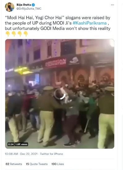 वाराणसी नरेंद्र मोदी का संसदीय क्षेत्र है और विगत 13 दिसंबर को वे काशी विश्वनाथ कॉरिडोर के उद्घाटन के मद्देनजर वाराणसी दौरे पर थे। दिन में उद्घाटन और पूजा अर्चना के बाद नरेंद्र मोदी, यूपी के मुख्यमंत्री के साथ रात्रि भ्रमण पर निकले थे। वायरल वीडियो देखने पर लगता है कि रात्रि भ्रमण पर निकले मोदी और योगी के सामने वाराणसी की जनता ‘मोदी हाय-हाय, चोर है-चोर है’ जैसे नारे लगा रही है।