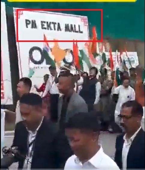 वीडियो को ध्यानपूर्वक देखने पर हमें एक बोर्ड नज़र आता है, जिस पर लिखा है ‘PM EKTA MALL’. इसके बारे में सर्च करने पर पता चला कि यह केंद्र सरकार की एक राष्ट्रीय पहल है, जिसका मकसद भारत के अलग-अलग राज्यों के हस्तशिल्प, हथकरघा और पारंपरिक उत्पादों को एक मंच पर लाकर दुनिया के सामने पेश करना है.