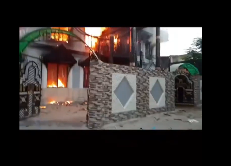 वायरल वीडियो 20 सेकेंड का है, जिसमें जलते हुए घर और एक जगह पर तोड़फोड़ के बाद जमीन पर बिखरे सामानों के दृश्य मौजूद हैं. इस दौरान वहां कई लोग भी खड़े दिखाई दे रहे हैं.