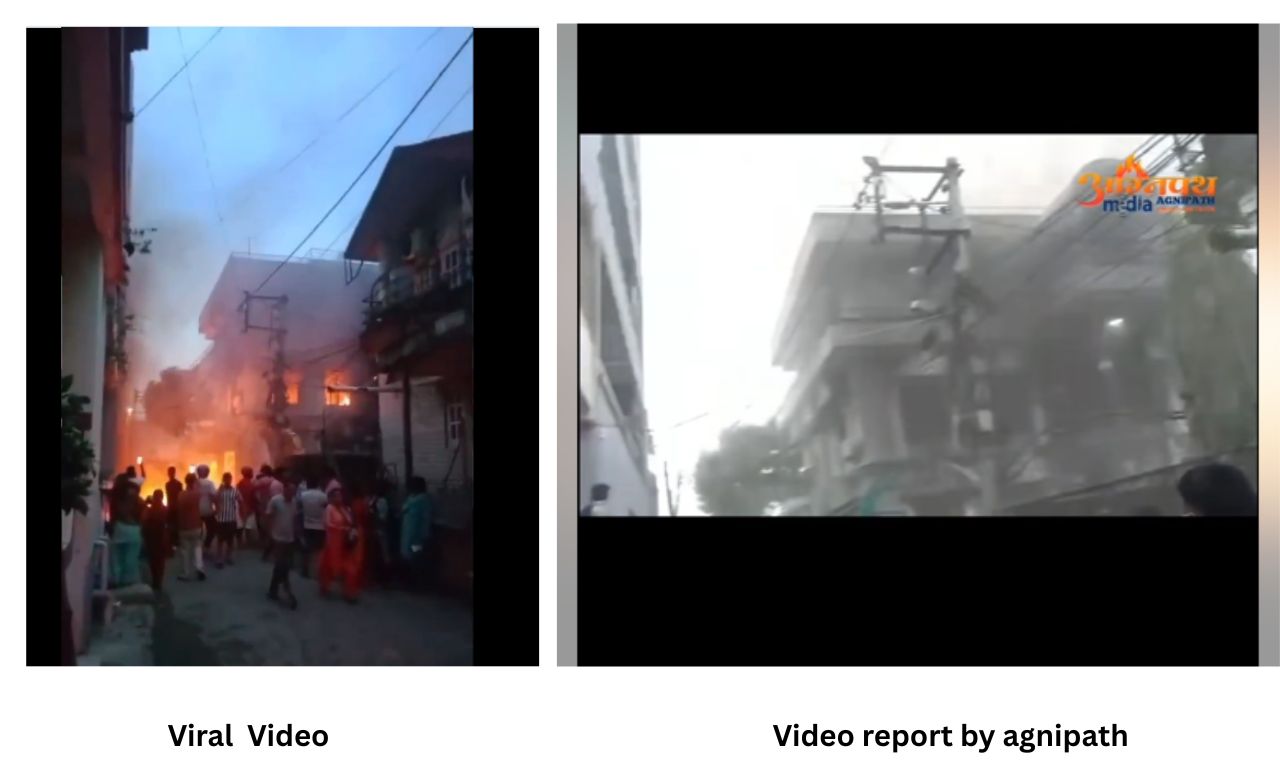 इसके बाद हमने अंत में मौजूद दृश्य की पड़ताल की, जिसमें एक घर में आग लगी हुई दिखाई दे रही है और वहां कई लोग भी खड़े दिखाई दे रहे हैं.